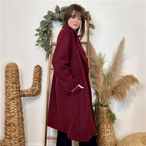 Associez-le à des tons neutres (écru, beige, noir, denim) pour faire ressortir sa couleur, ou jouez le camaïeu avec des accessoires prune/rouille. Une paire de bottines ou de talons suffit à le rendre super élégant.