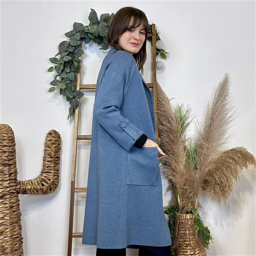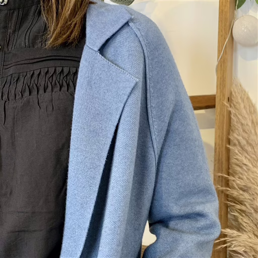 J945 – Manteau en maille (TU) (bleu jeans)