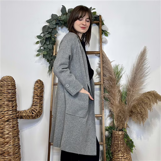 J945 – Manteau en maille (TU) (gris)