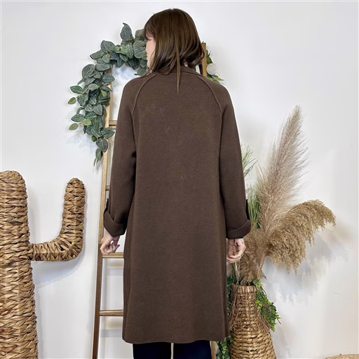 Manteau en maille proposé en taille unique, au style élégant et intemporel. Sa coupe longue et droite structure la silhouette tout en gardant un joli tombé fluide. On aime son col tailleur chic, ses manches longues et sa ligne épurée qui en font une pièce facile à porter au quotidien.