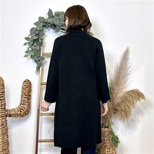 Manteau en maille proposé en taille unique, au style élégant et intemporel. Sa coupe longue et droite structure la silhouette tout en gardant un joli tombé fluide. On aime son col tailleur chic, ses manches longues et sa ligne épurée qui en font une pièce facile à porter au quotidien.