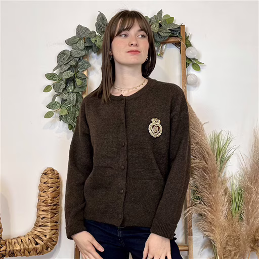 On craque pour le détail écusson brodé sur la poitrine, qui apporte une touche esprit campus/retro très tendance. Les finitions bord-côtes au bas et aux poignets assurent un maintien agréable.