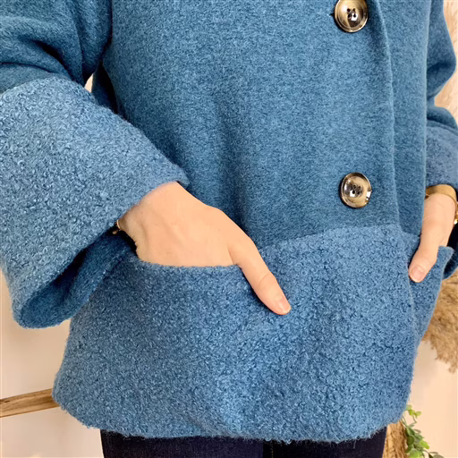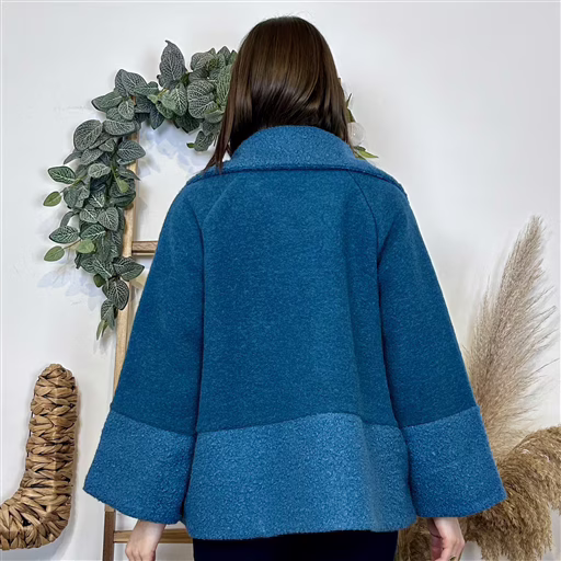 J946 – Manteau laine et bouclettes (TU) (bleu canard)