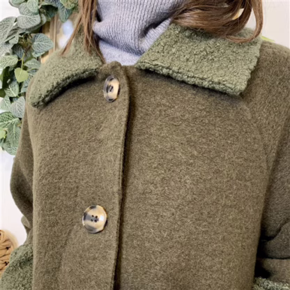 J946 – Manteau laine et bouclettes (TU) (kaki)