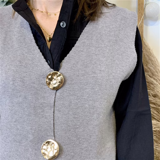 Ce gilet sans manches à boutons est la petite pièce chic et facile à adopter pour twister vos looks de saison. Avec sa maille douce et sa coupe droite légèrement ajustée, il structure la silhouette tout en restant confortable. Son encolure en V met joliment le buste en valeur et permet de le superposer facilement sur une chemise, une blouse ou un col roulé.