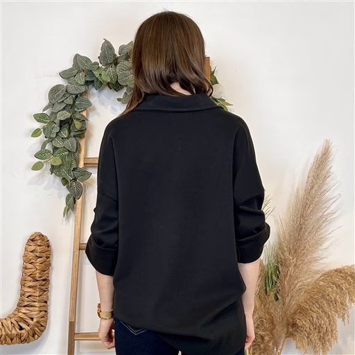 Les boutons bijoux dorés ajoutent une note élégante et lumineuse, parfaite pour rehausser un look simple. Facile à porter au quotidien comme en soirée.