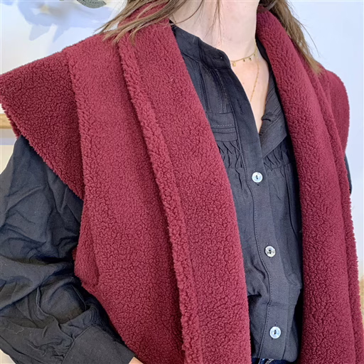 Proposée en taille unique, cette veste sans manches s’adapte à différentes morphologies grâce à sa coupe droite et légèrement ample. Elle se porte facilement en superposition, sans serrer au niveau des épaules ou du buste, pour un rendu confortable et toujours structuré.