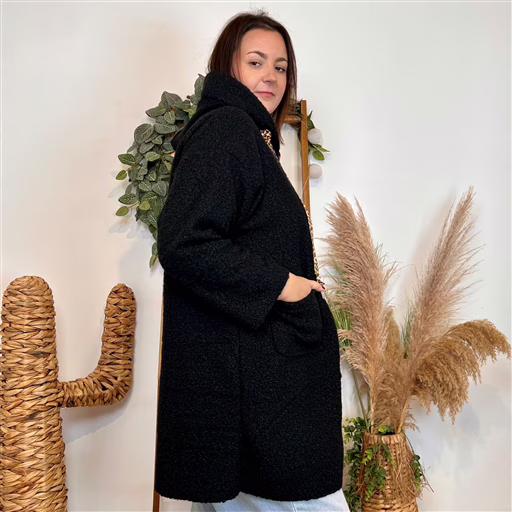 Proposé en taille unique grande taille, ce manteau convient facilement aux morphologies du 42 au 48 : il tombe joliment, offre de l’aisance aux épaules et au buste, et reste confortable toute la journée. À porter avec un jean, un legging ou une robe pour un look chaleureux, moderne et plein de caractère.