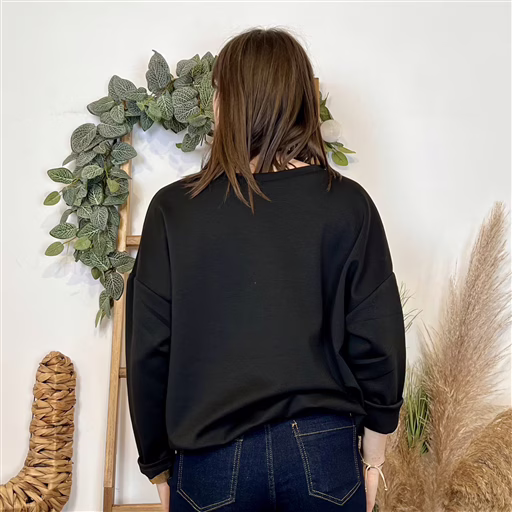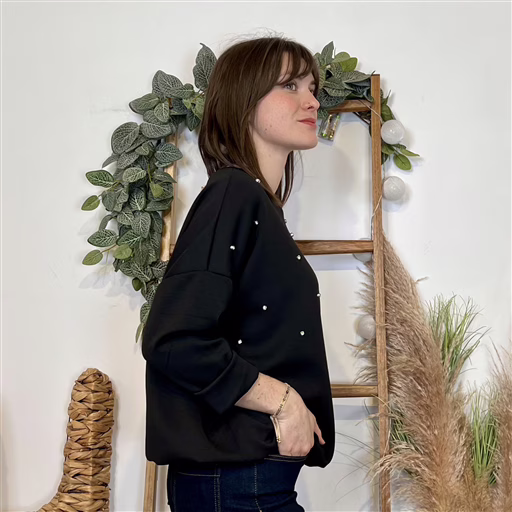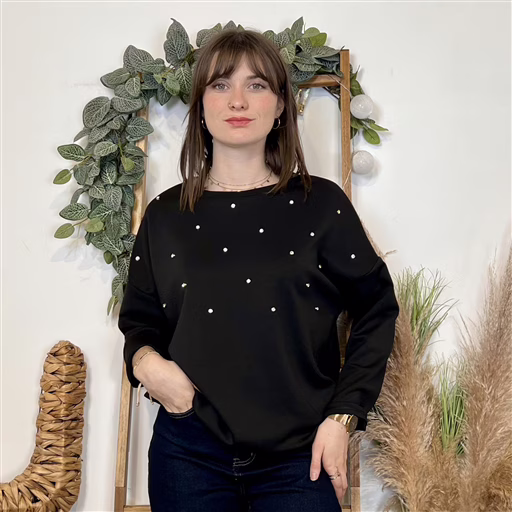 Pull doux à strass, proposé en taille unique. Sa coupe ample et confortable avec épaules tombantes offre un porté décontracté tout en restant féminin. Le devant est délicatement décoré de petits strass qui apportent une touche lumineuse. Col rond, manches longues et matière souple agréable à porter au quotidien.