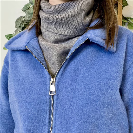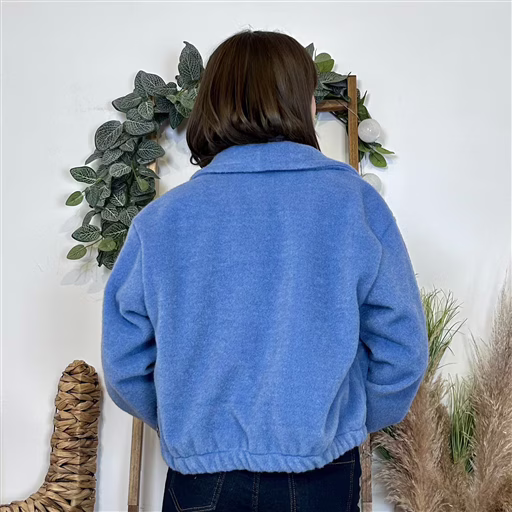 Bomber court en matière douce effet bouclette, proposé en taille unique. Sa coupe légèrement ample avec épaules tombantes donne un look casual et tendance. Fermeture zippée sur le devant, col chemise pour une touche structurée, et finitions resserrées aux poignets et à la taille pour un joli volume blousant. Deux poches plaquées complètent le modèle, pratique et facile à porter au quotidien.