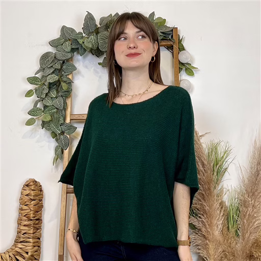 Craquez pour ce pull en maille douce à manches courtes, pensé pour un look cosy et moderne en toute simplicité. Sa coupe ample et légèrement oversize tombe naturellement sur la silhouette, offrant un tombé fluide et confortable. Le col rond et les manches larges apportent une touche décontractée, idéale pour un style du quotidien.