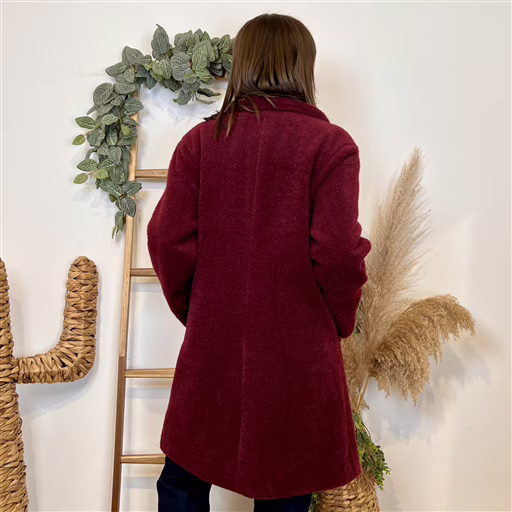 J975 – Manteau long col tailleur (TU) (bordeaux)