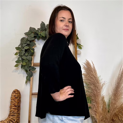 Confectionné dans une maille douce et agréable à porter, il offre un tomber souple qui suit les formes sans les marquer. Sa coupe ample et confortable est idéale pour les morphologies généreuses : on se sent à l’aise tout en gardant une ligne harmonieuse. Les manches longues et la finition soignée en font une pièce facile à porter au quotidien.