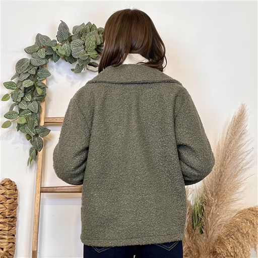 J897 – Veste boutonnée en bouclette (TU) (kaki)
