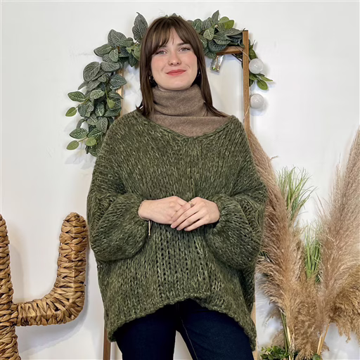 J998 – Pull grosses mailles (TU) (kaki)