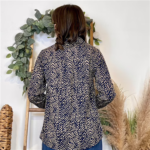 K009- Chemise imprimé zébrée (T36-T38) (marine)