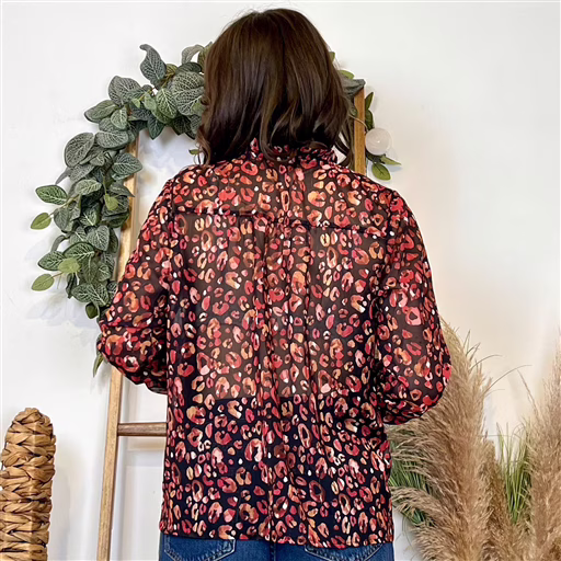 Blouse à l’imprimé automnal, proposée du 36/38 au 38/40, nous vous conseillons de choisir cette blouse dans votre taille habituelle.
