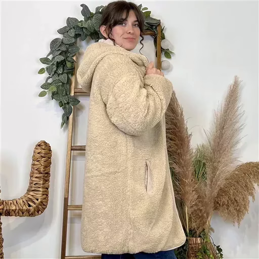 Sa coupe mi-longue et sa capuche enveloppante en font l’alliée idéale des journées fraîches et des week-ends citadins.
