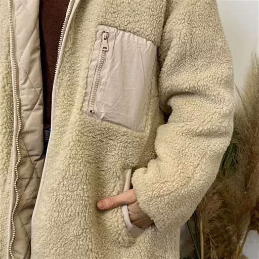 Côté « Face » : un revers fourré ultra-doux, pour un effet cocooning immédiat. Les poches zippées contrastées ajoutent une touche moderne et dynamique.