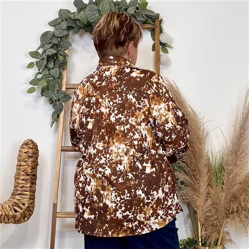 Chemise à l’imprimé automnal signée By One boutonnée de haut en bas. Boutons cachés par une bande de tissus. On adore les imprimés, ses couleurs et son style dans l’air du temps. Col chemisier, poignet boutonné. Pour toutes celles qui veulent être tendance sans jamais être standard. A associer avec un Jean Melly and Co ou un modèle de jean Voggo, nous vous conseillons afin de finir votre look, nos nombreux accessoires.