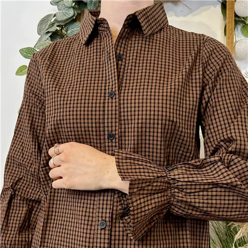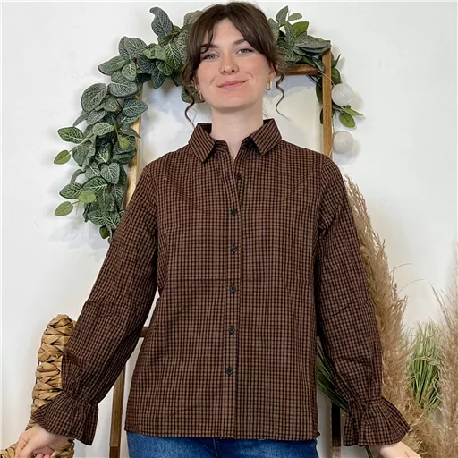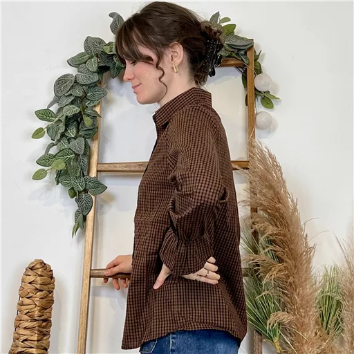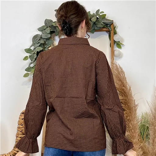Cette chemise à l’imprimé vichy se distingue par son classissisme, ce qui lui permet de se glisser sous tous les gilets ou pulls sans manches. Les manches longues offrent une élégance intemporelle avec ses finitions volantées, tandis que le col chemisier ajoute une touche de sophistication. Confortable et chic, elle est tout simplement parfaite.