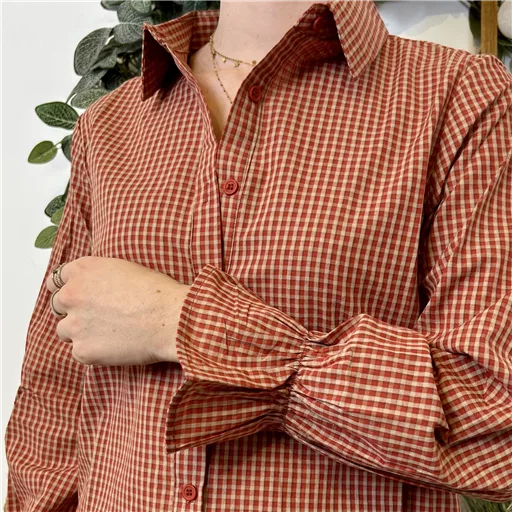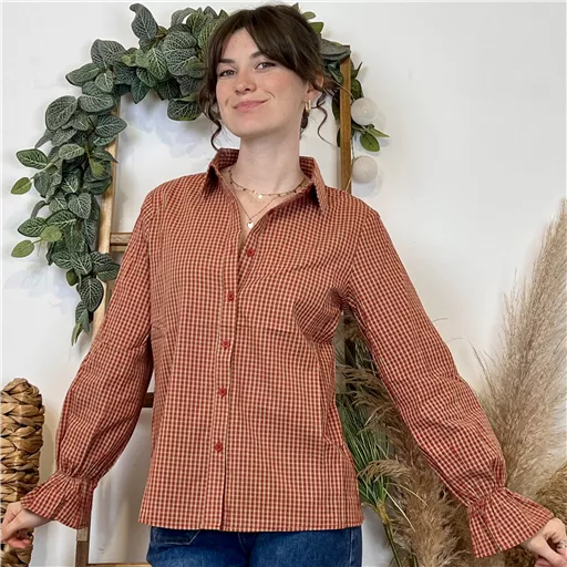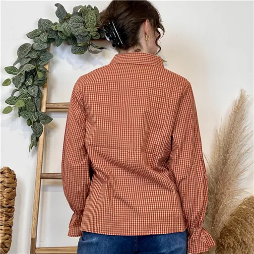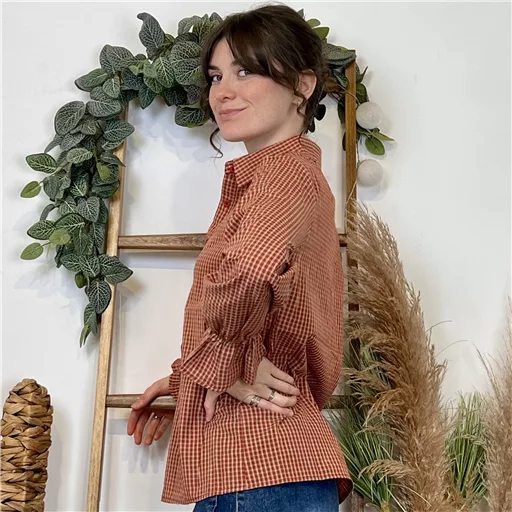 Cette chemise à l’imprimé vichy se distingue par son classissisme, ce qui lui permet de se glisser sous tous les gilets ou pulls sans manches. Les manches longues offrent une élégance intemporelle avec ses finitions volantées, tandis que le col chemisier ajoute une touche de sophistication. Confortable et chic, elle est tout simplement parfaite.