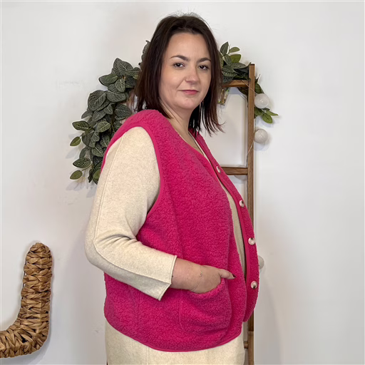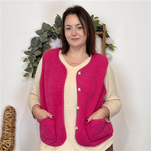 K021- Gilet sans manche moutonné (T40-T48) (fuchsia)