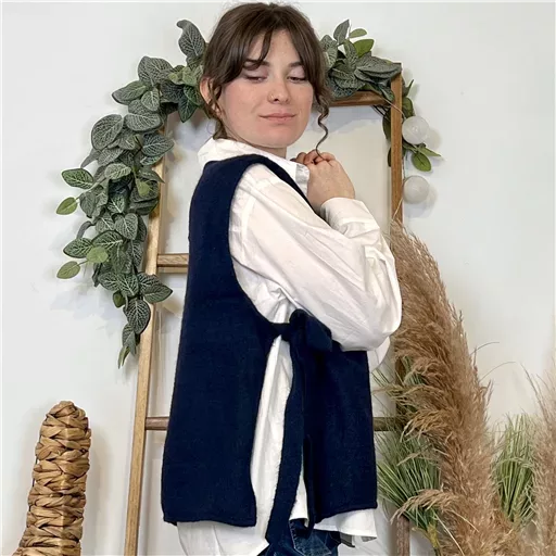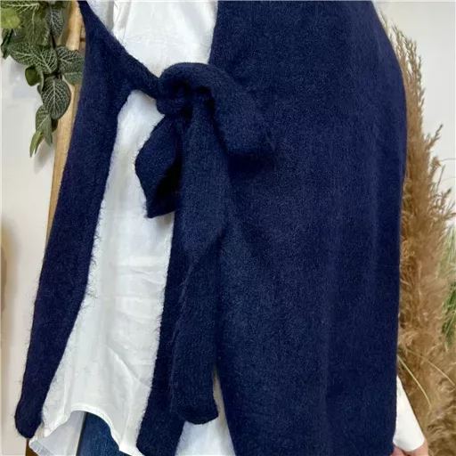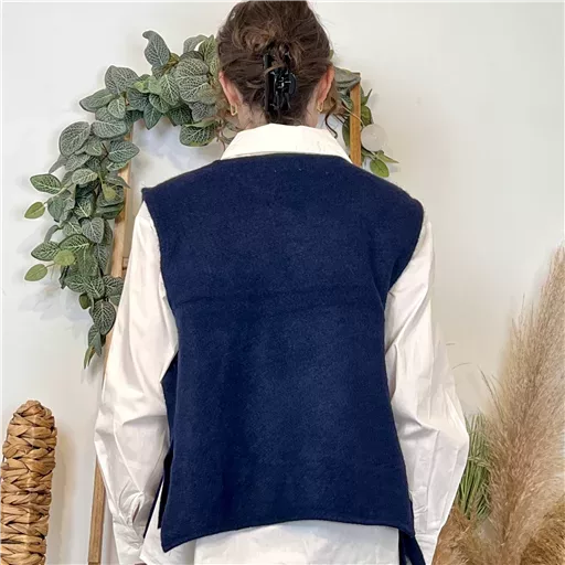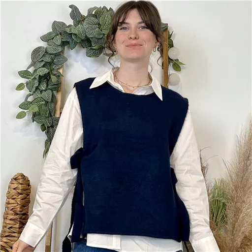 Ce pull sans manches fond uni pour femme proposé par la marque « Version Féminin » est proposé en taille unique, il conviendra du 36 au 42 en fonction des différentes morphologies. Ce pull coupe droite est confectionné en maille un tissu doux et chaud qui est idéal pour les saisons fraîches. Il présente des ouvertures de chaque côté, qu’il est possible de resserrer avec des noeuds. Très tendance, c’est le Must Have de cette année 2025. Ici porté sur une blouse unie.