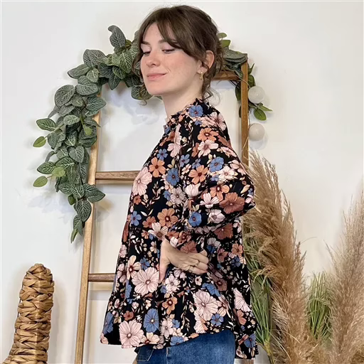 Allure et féminité sont les maîtres-mots de cette blouse imprimée, avec de jolies fronces de finition au niveau du col en V. La coupe de cette blouse avec son col en V et ses couleurs conféreront une touche de style à tous les looks. Accompagnée d’un jean, ou d’un gilet elle sera votre allié idéal !