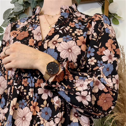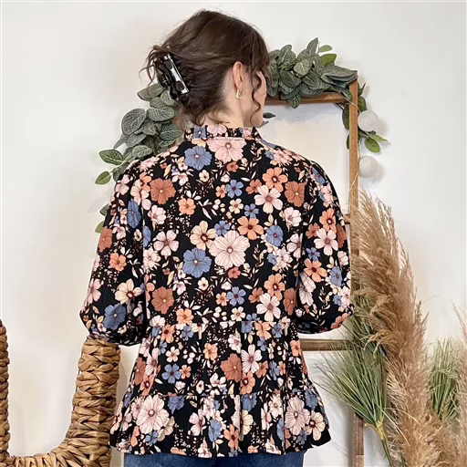 Blouse imprimée proposée du 36/38 au 38/40, nous vous conseillons de choisir cette blouse dans votre taille habituelle.