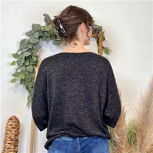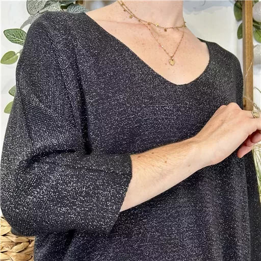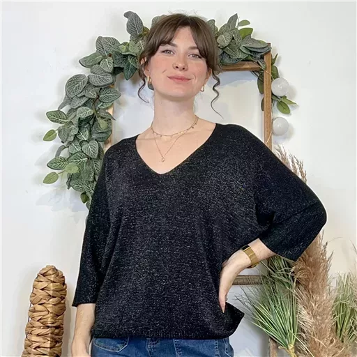 K052- Pull col en V Lurex (Tu) 🇮🇹 (noir)