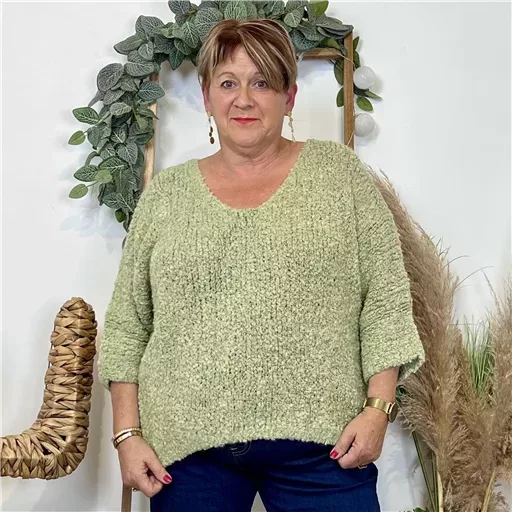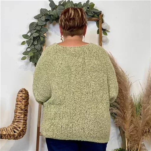 K064- Pull Oversize Maille Bouclette 🇮🇹 (vert céladon)