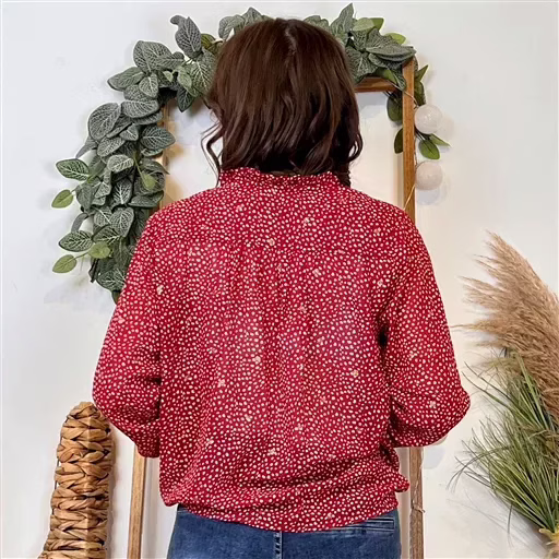 Chemisier imprimé pointillé en voile By.One boutonné de haut en bas. On adore son imprimé, ses couleurs et son style dans l’air du temps. Voici la tendance de cette rentrée 2024. Col chemisier, poignet boutonné. Pour toutes celles qui veulent être tendance sans jamais être standard. A associer avec un jean et pour finir votre look découvrez nos nombreux accessoires. Choisir sa taille habituelle.