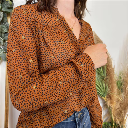 Chemisier imprimé pointillé en voile By.One boutonné de haut en bas. On adore son imprimé, ses couleurs et son style dans l’air du temps. Voici la tendance de cette rentrée 2024. Col chemisier, poignet boutonné. Pour toutes celles qui veulent être tendance sans jamais être standard. A associer avec un jean et pour finir votre look découvrez nos nombreux accessoires. Choisir sa taille habituelle.