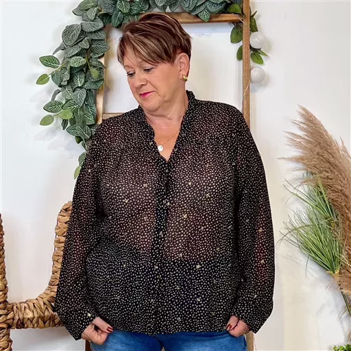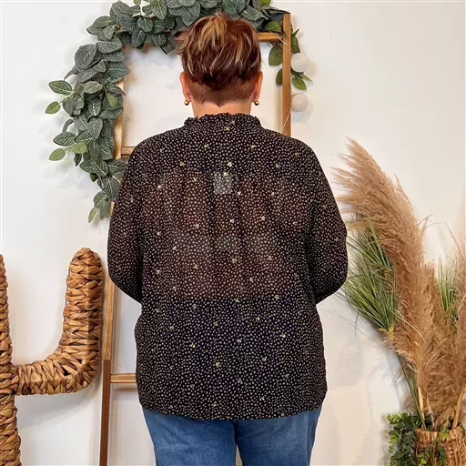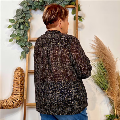 Chemisier imprimé pointillé en voile By.One boutonné de haut en bas. On adore son imprimé, ses couleurs et son style dans l’air du temps. Voici la tendance de cette rentrée 2024. Col chemisier, poignet boutonné. Pour toutes celles qui veulent être tendance sans jamais être standard. A associer avec un jean et pour finir votre look découvrez nos nombreux accessoires. Choisir sa taille habituelle.