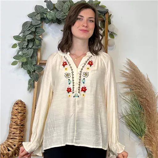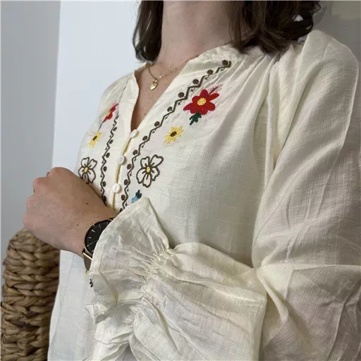 blouse facile à porter avec des Bottines ou santiags, une pochette ou un sac.