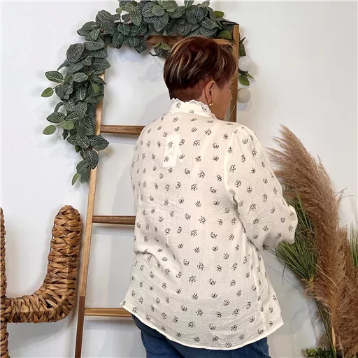 Chemisier encolure haute brodé By.One à la coupe légèrement trapèze. Boutonné de haut en bas, bas de manches froncé. On adore son imprimé, ses couleurs et son style dans l’air du temps. Voici la tendance de cette rentrée 2025. Col chemisier, poignet boutonné. Pour toutes celles qui veulent être tendance sans jamais être standard. A associer avec un jean Voggo et pour finir votre look découvrez nos nombreux accessoires.