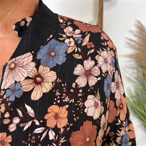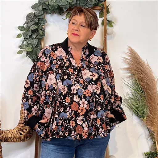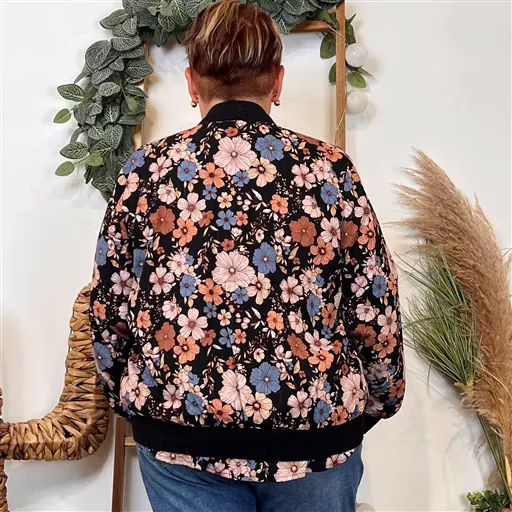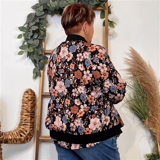 K103- Bomber By One imprimé Floral (T40-T48) (noir)