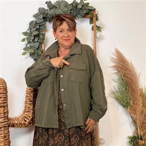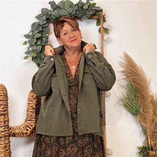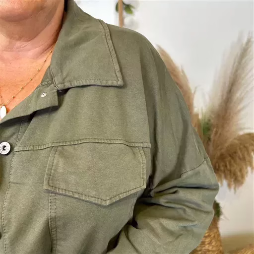 Cette Veste Militaire Kaki en coton de style vintage est parfait pour la rue, les vacances, les rendez-vous, les activités de plein air et la vie quotidienne. Manches longues, col chemise et 2 poches poitrine. Vous pouvez le porter avec un jean assorti et un t-shirt basique blanc. Cette veste pour femme s’adapte à une variété de styles. Elle peut être assortie à vos t-shirts préférés, pantalons de sport et pantalons décontractés.