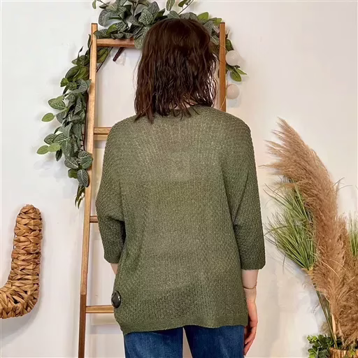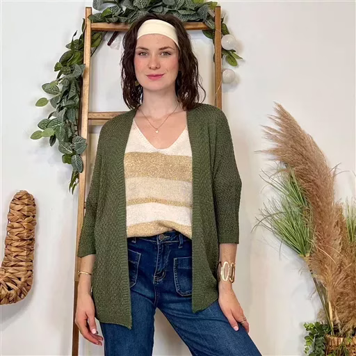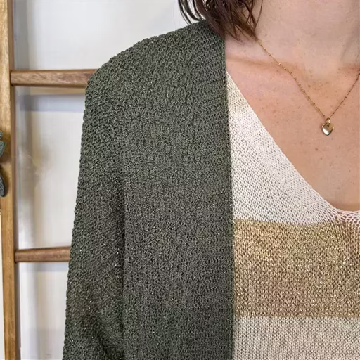 Une pièce à posseder absolument, ce gilet sans bouton mi-long en maille & fil Lurex. De fabrication italienne ce modèle est proposé en Taille Unique. Ce Modèle conviendra du 36 au 42/44 en fonction des différentes morphologies.