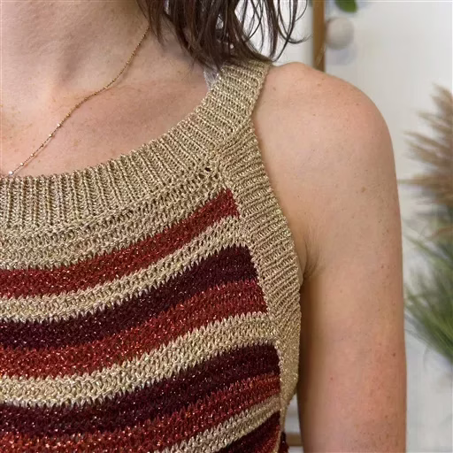 * Le fil Lurex est composé d’un film polyester recouvert d’une couche métallique en aluminium la plupart du temps, qui lui confère toute sa brillance, rendant la maille plus raide.