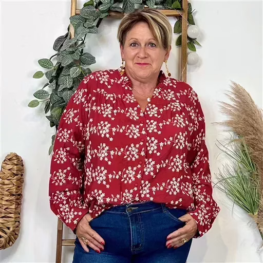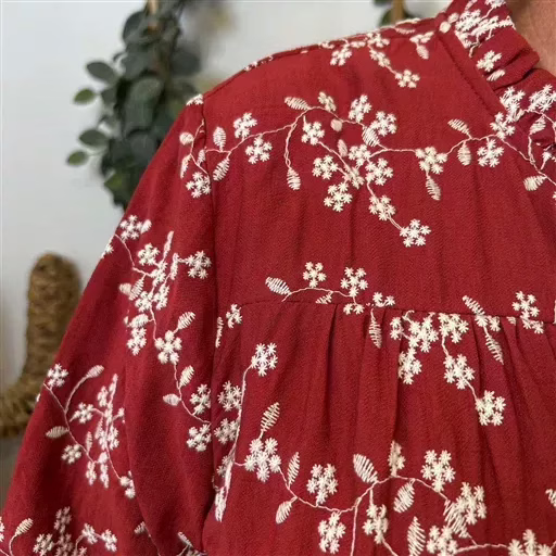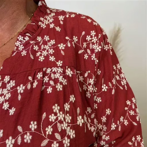 K094- Chemise Brodée By One (T40-T48) (bordeaux)
