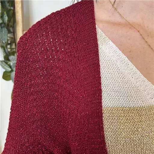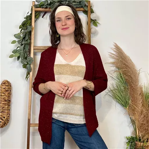 Une pièce à posseder absolument, ce gilet sans bouton mi-long en maille & fil Lurex. De fabrication italienne ce modèle est proposé en Taille Unique. Ce Modèle conviendra du 36 au 42/44 en fonction des différentes morphologies.