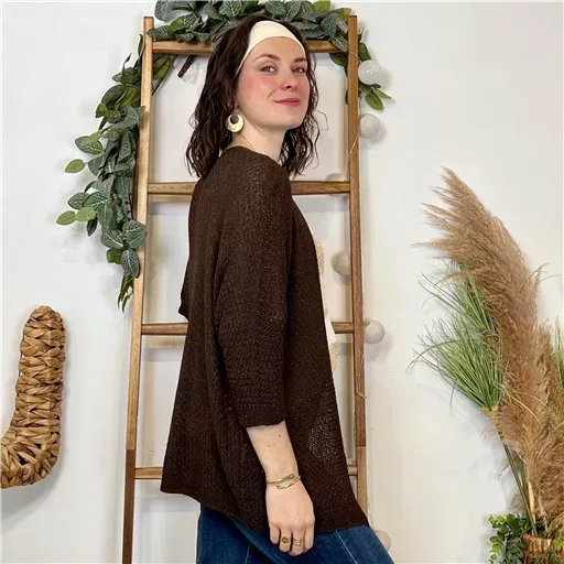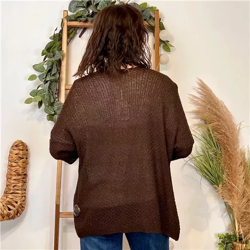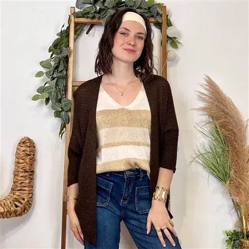 Une pièce à posseder absolument, ce gilet sans bouton mi-long en maille & fil Lurex. De fabrication italienne ce modèle est proposé en Taille Unique. Ce Modèle conviendra du 36 au 42/44 en fonction des différentes morphologies.