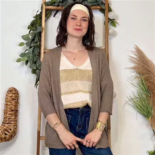 K109- Gilet sans bouton Lurex (Tu) 🇮🇹 (taupe)
