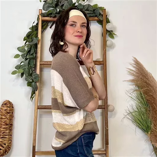 I880- Pull rayé Lurex (Tu) 🇮🇹 (taupe)
