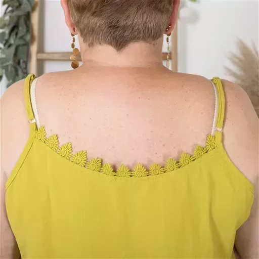 Débardeur fines bretelles Christy : Un indispensable pour votre garde-robe. Fines bretelles pour un look féminin et délicat; top col en V avec une finition dentelle pour une touche d’élégance. Modèle SOYEUX pour un confort optimal et un toucher luxueux. Coupe fluide et légèrement cintrée pour flatter la silhouette. Polyvalent il se portera aussi bien en été qu’en hiver, pour un look décontracté ou plus habillé. Facile à assortir avec un jean, un pantalon, une jupe ou une gilet pour créer une multitude de looks différents.