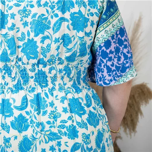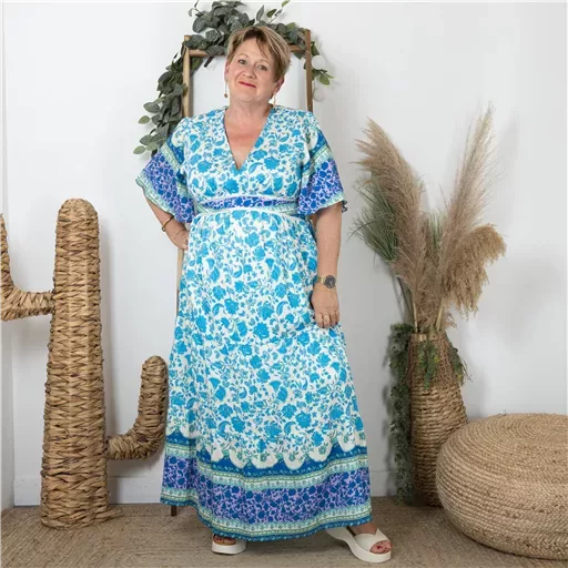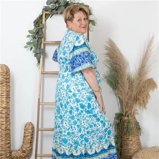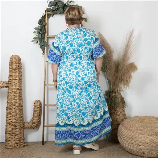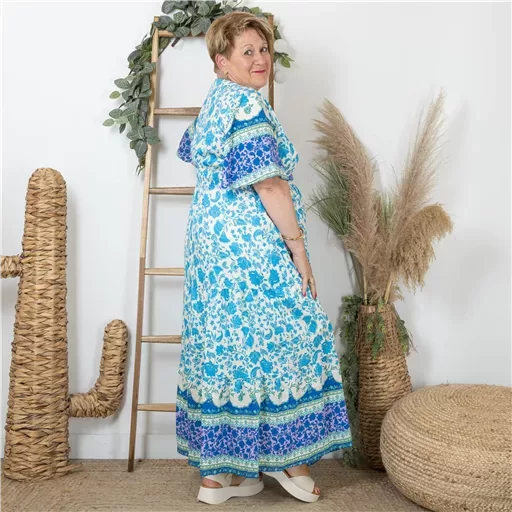 Robe longue à l’imprimé Bohêmes. Manches courtes, avec un magnifique col V plongeant et croisé. Cette robe By One sera à coup sûr un modèle phare de votre dressing. Cintrée avec un bandeau plat au niveau de la taille, elle sera le bon compromis pour être branchée tout en étant à l’aise. Pour finir votre look découvrez nombreux accessoires. (Chaussures, sacs…).
