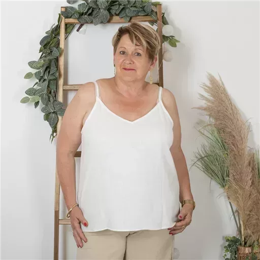 Choisissez votre taille habituelle T40 (L) T42 (XL) T44 (2XL) T46 (3XL) T48 (4XL), pour ce débardeur fines bretelles Maëlle qui est un basique indispensable à avoir dans son dressing. Ce top est polyvalent, confortable, élégant et facile à assortir. C’est un véritable passe-partout qui vous permettra de créer une multitude de looks différents.