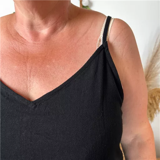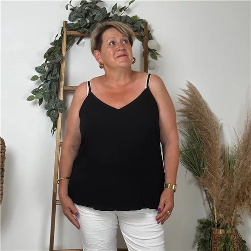 Choisissez votre taille habituelle T40 (L) T42 (XL) T44 (2XL) T46 (3XL) T48 (4XL), pour ce débardeur fines bretelles Maëlle qui est un basique indispensable à avoir dans son dressing. Ce top est polyvalent, confortable, élégant et facile à assortir. C’est un véritable passe-partout qui vous permettra de créer une multitude de looks différents.